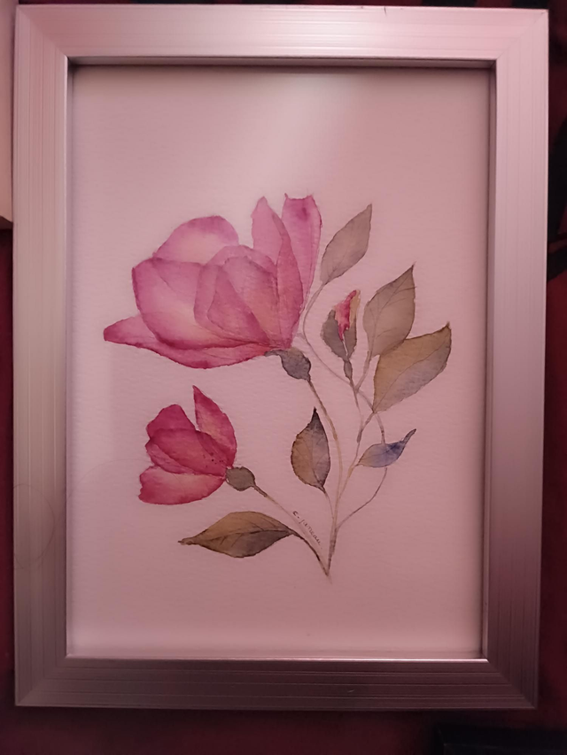 Aquarelle originale fleures cadre 20/15 cm